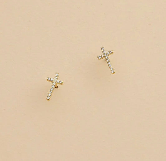 Tiny Rhinestone Cross Earrings