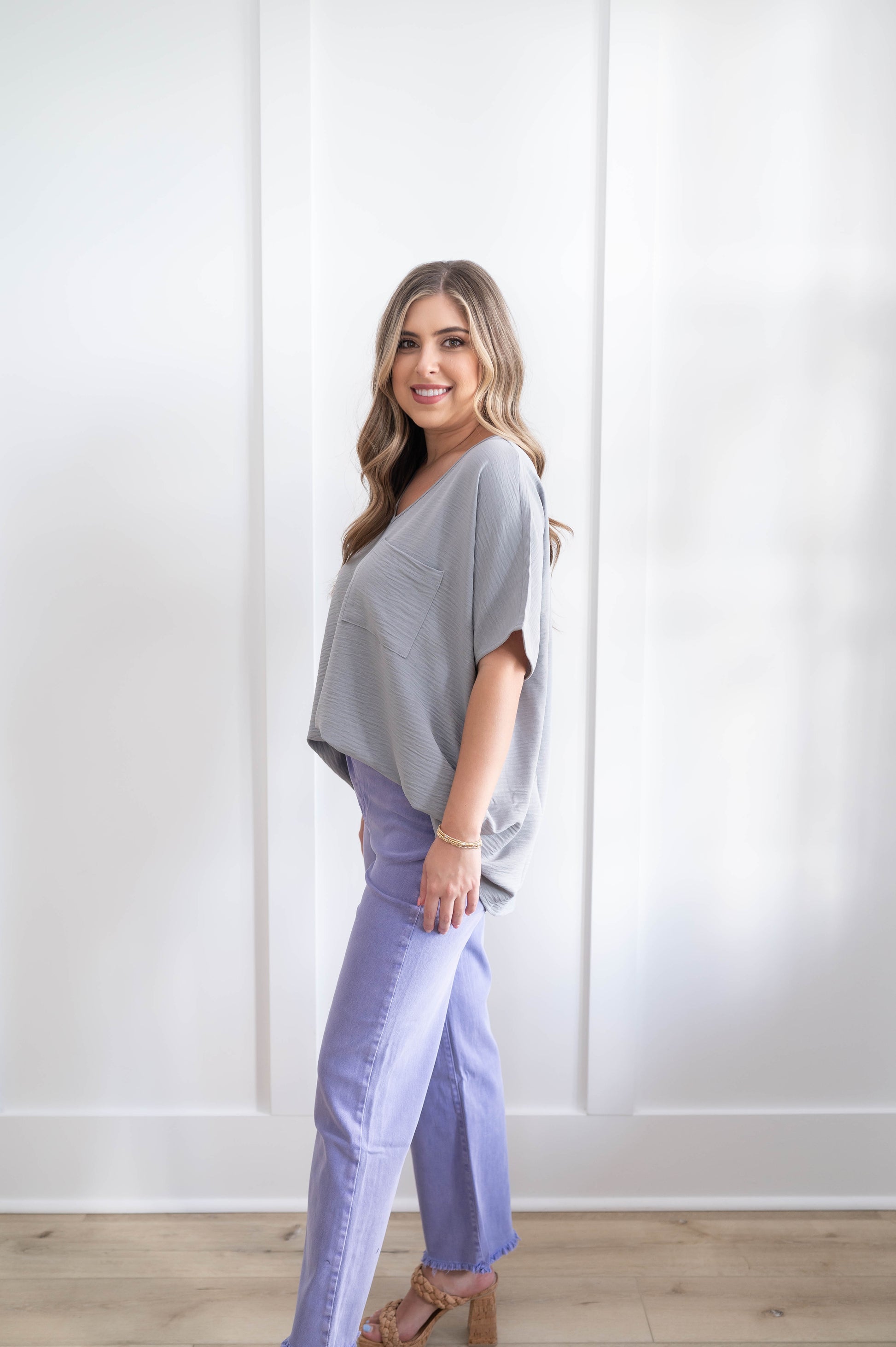 - Model 1 wearing size Small in color Gray