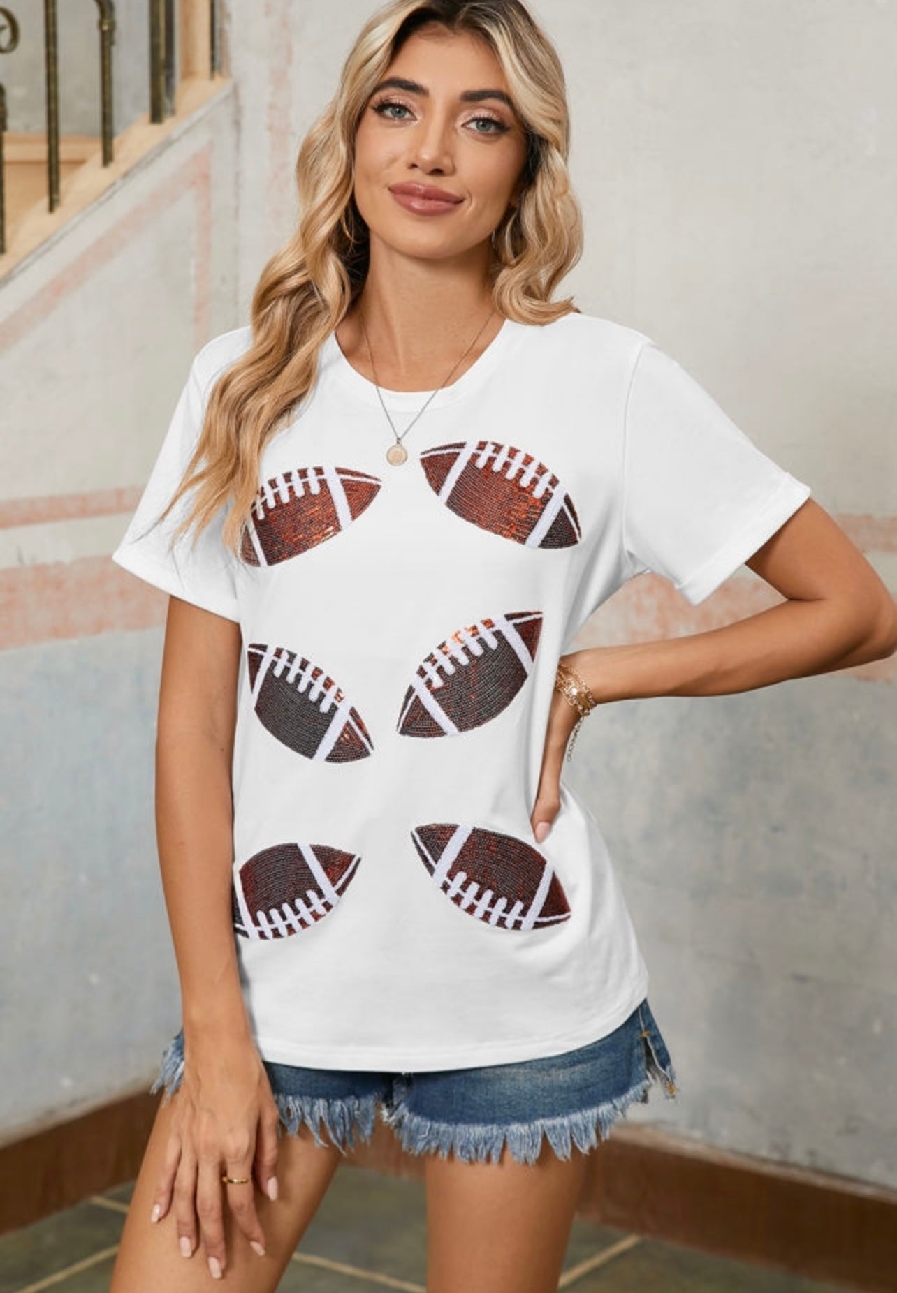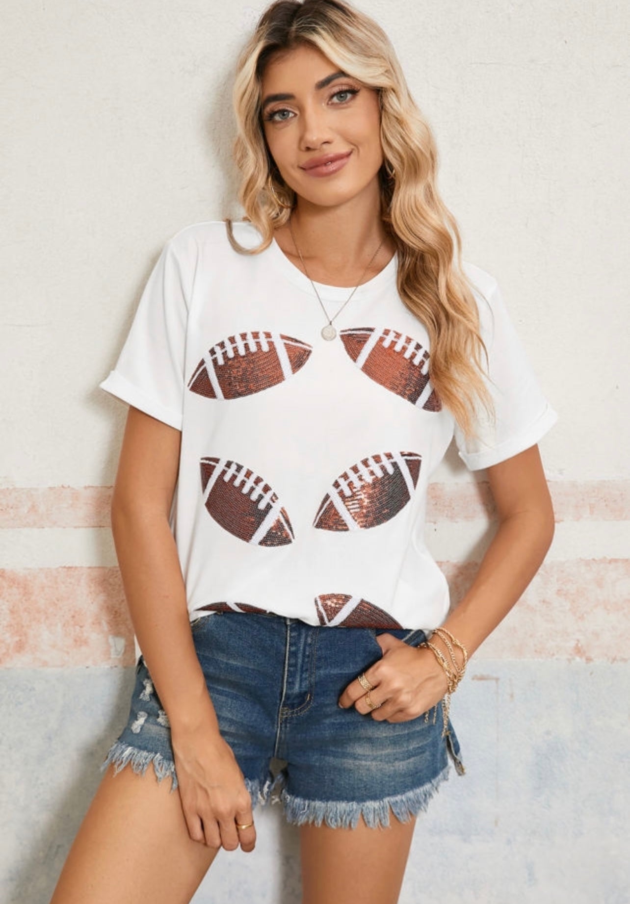 Sequin Football White Tee