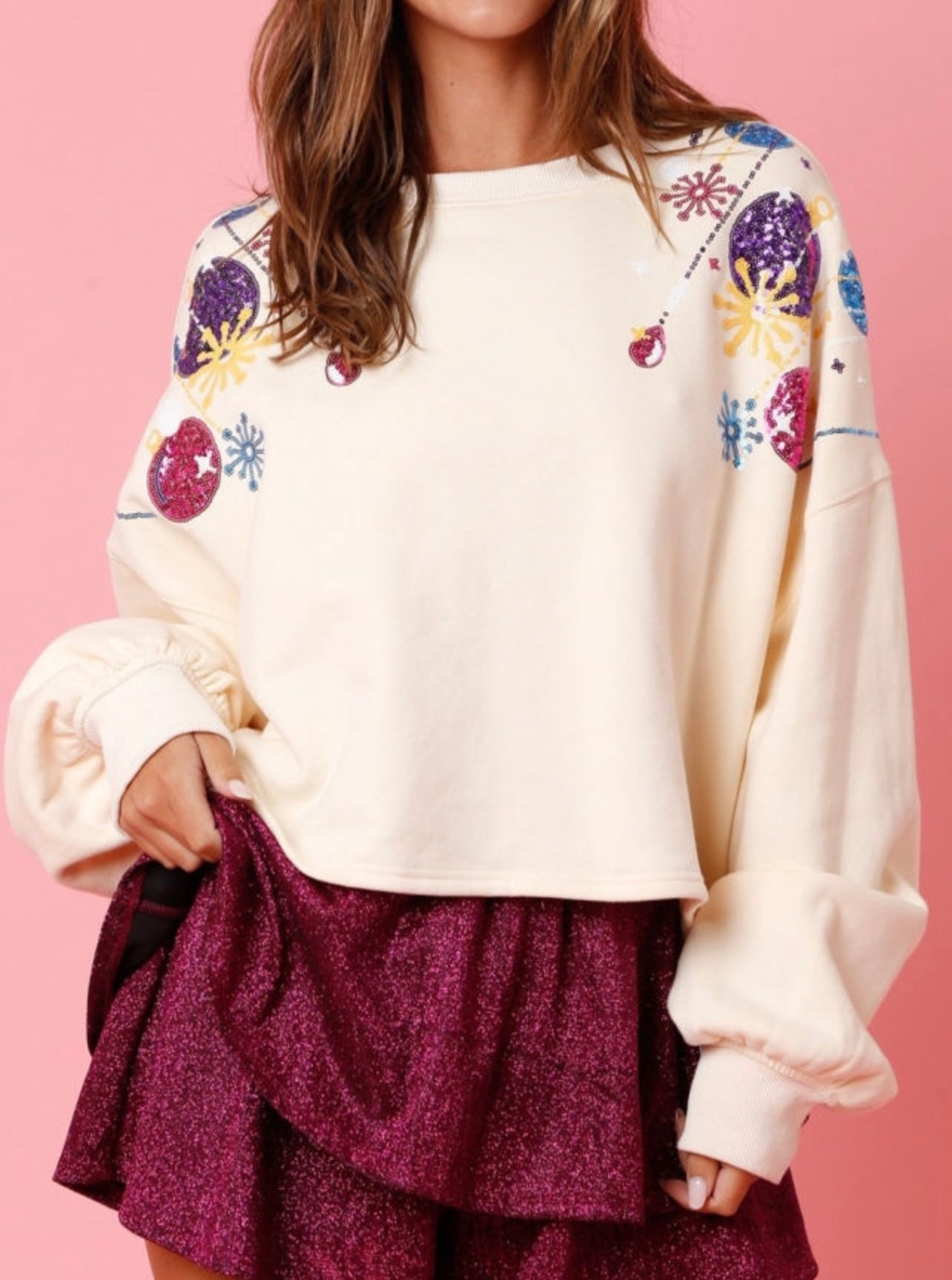 Sequin Ornaments Oversized Sweatshirt