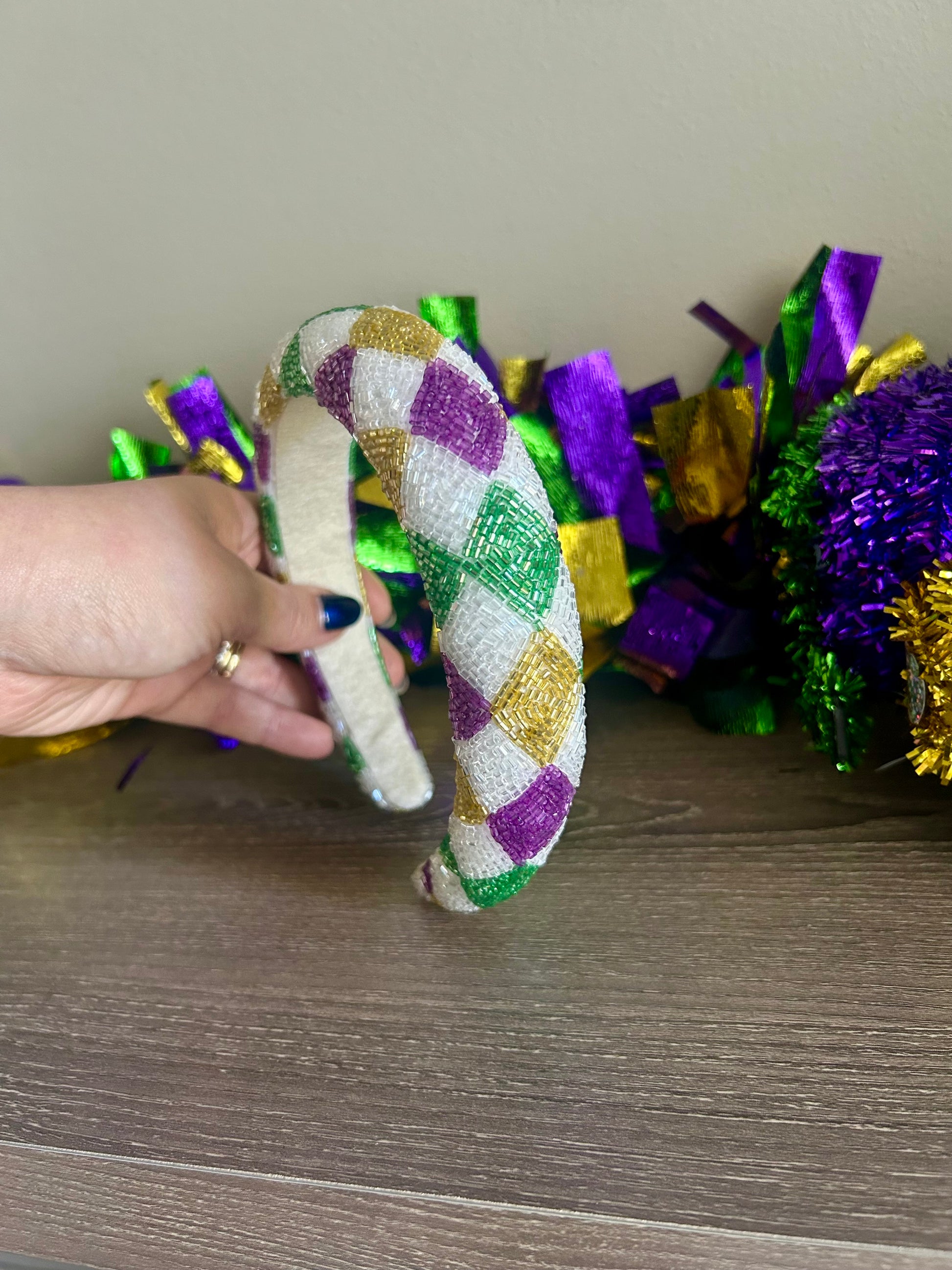 White beaded MG headband